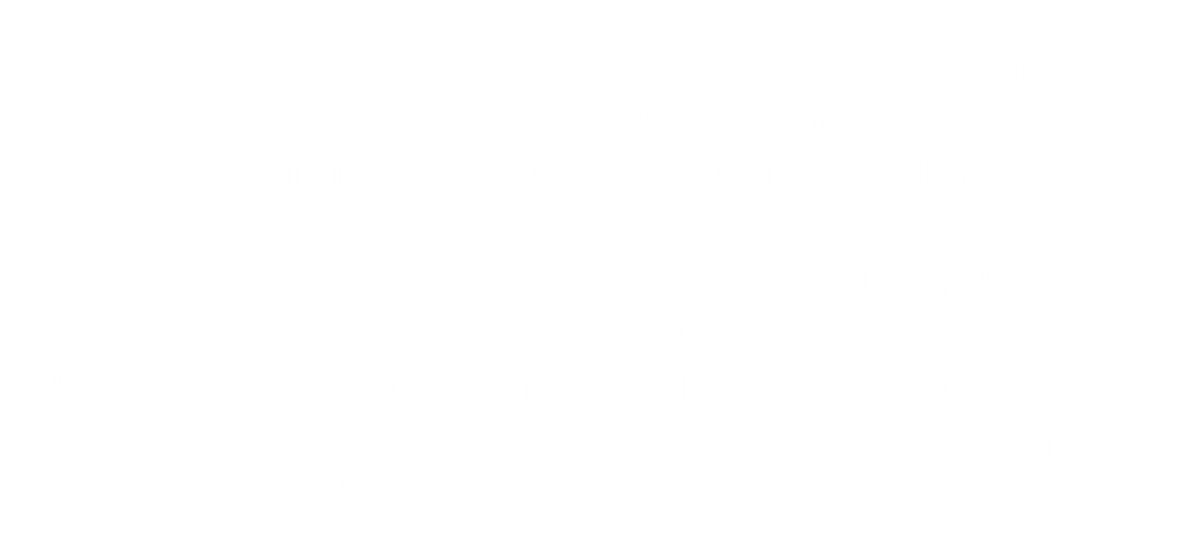 Attendees will learn how to fold their own zine or mini-booklet and immerse themselves in a therapeutic space of embodied creativity - getting out of their heads and into their bodies to create something totally unique, without the pressure for it to be finished or 'perfect.' Using collaging, writing, and drawing techniques, zine-making workshops are fun and inspiring spaces of collective making. My workshops are tailored to your needs and vibes!